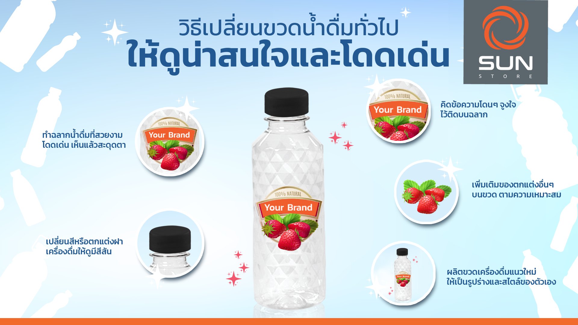 เพื่อทำให้ ขวดและเครื่องดื่มของคุณแตกต่างจากเจ้าอื่นในท้องตลาด ยิ่งขวดสวย คุณภาพดี ขนาดเหมาะมือพกพาง่ายมากเท่าไหร่ ก็ยิ่งสร้างข้อได้เปรียบให้กับเครื่องดื่มมากเท่านั้น และเป็นที่รู้กันดีว่าวัสดุที่นิยมนำมาทำขวดน้ำดื่มสำหรับวางจำหน่ายมากที่สุดก็คือ “ขวดพลาสติก” เพราะความคงทน ความเหนียวแน่นของพลาสติกคือสิ่งที่ทำให้ผู้บริโภคสามารถมั่นใจได้ว่า น้ำดื่มในขวดจะไม่ตกแตก หรือหกเลอะเทอะจนเสียอารมณ์อย่างแน่นอน
