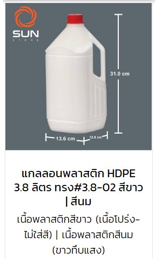 - แกลลอนความจุ 3 ลิตรขึ้นไป เหมาะสำหรับผลิตภัณฑ์ประเภทที่ระยะเวลาวันหมดอายุค่อนข้างนาน สามารถเก็บไว้ได้นานโดยไม่ต้องกลัวเสีย เพียงพอต่อการใช้งาน เช่น แกลลอนน้ำดื่ม 5 ลิตร หรือแกลลอนใส่สารเคมี