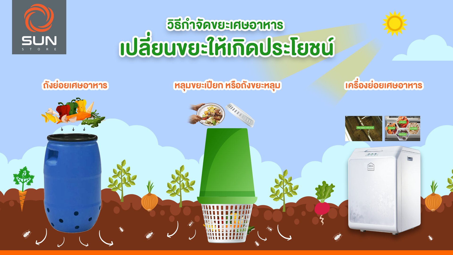 เครื่องย่อยเศษอาหาร เป็นวิธีการย่อยเศษอาหารแนวใหม่ เหมาะสำหรับคนที่ไม่มีพื้นที่สำหรับการกำจัดเศษอาหารแบบอื่นๆ หรือต้องการความสะดวกรวดเร็ว ไม่ต้องรอเวลานาน โดยวิธีการย่อยเศษอาหารของเครื่องย่อยเศษอาหาร จะเป็นการใช้เทคโนโลยีการย่อยสลายด้วยจุลินทรีย์ (เครื่องย่อยสลายจุลินทรีย์) จึงสามารถมั่นใจได้ว่า เครื่องย่อยเศษอาหารประเภทนี้จะใช้ไฟฟ้าในการช่วยย่อยและช่วยเพิ่มความร้อนในการอบ เป็นวิธีง่ายๆ ที่สามารถติดตั้งเพื่อใช้งานได้ในทุกครัวเรือน ช่วยลดปริมาณขยะเศษอาหาร ขยะอินทรีย์ แถมยังช่วยลดปัญหาโลกร้อนได้เป็นอย่างดี