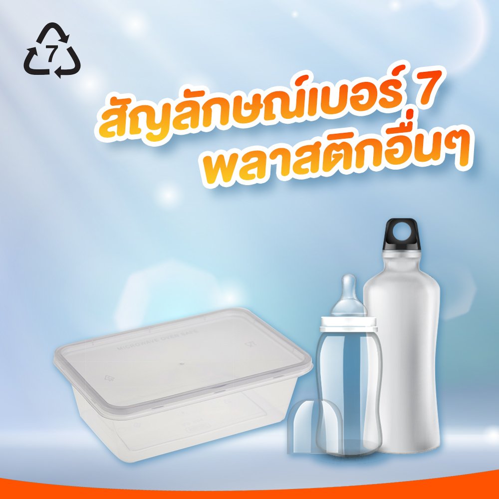 พลาสติกอื่นๆ ที่มีสัญลักษณ์เบอร์ 7 หรือสัญลักษณ์ OTHER กำกับไว้ แต่ต้องระวังสาร Bisphenol A หรือที่เราเรียกว่า BPA ซึ่งหากสารนี้ปนเปื้อนเข้าสู่ร่างกาย จะส่งผลเสียต่อเซลล์สมอง ระบบประสาท และระบบสืบพันธุ์